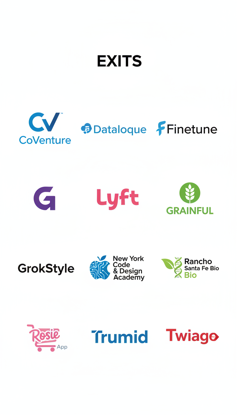 ~$25M deployed across 40+ companies, with notable exits including Lyft, Trumid, GrokStyle (Facebook), and Datalogue (Nike).