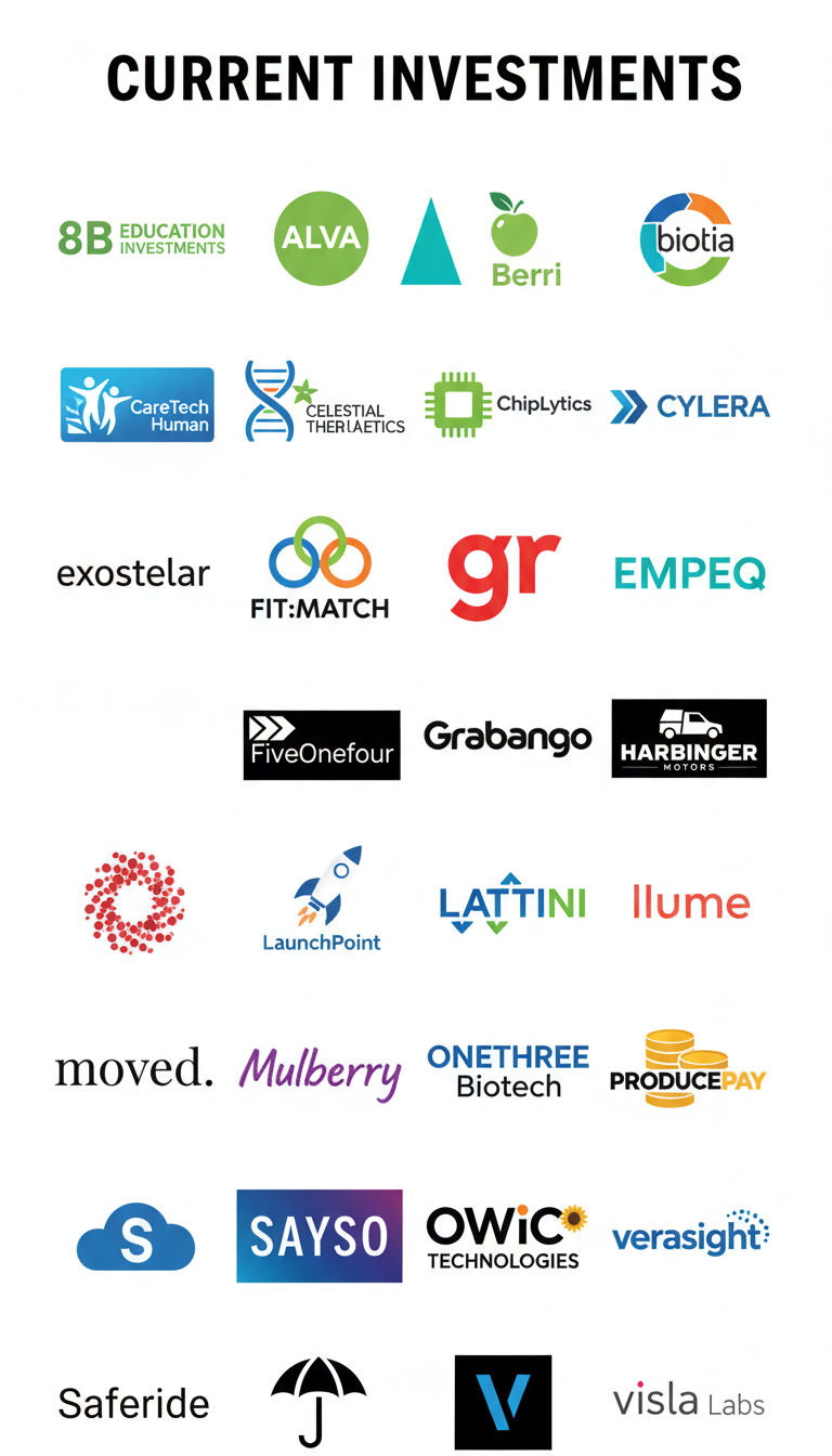 8B Finance, Alva Health, Berri Pro, Biotia, CareTech Human, Celestial Therapeutics, Chiplytics, CoVenture, Cylera, Empeq, Exotanium, FIT:MATCH, FiveOneFour, Halomine, Harbinger Motors, Intrommune, Kalibri Labs, Lattini, Launchpoint, Llume, Moved, Mulberry, One Three Biotech, Produce Pay, Saferide Health, SaySo, TETMedical, Urban Umbrella, Verasight, Vetty, Visla Labs